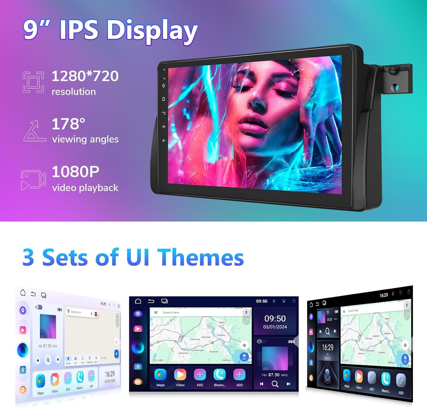 Android 13, CarPlay & Auto sans fil | Écran tactile IPS QLED 9" pour E46 | Maintien des fonctions d'origine Lire plus