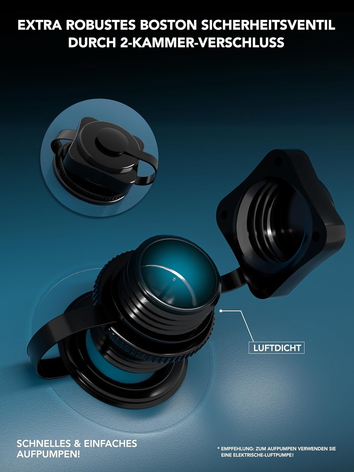 - Son installation est simplifiée grâce à sa conception gonflable et sa double couture assure une durabilité accrue.