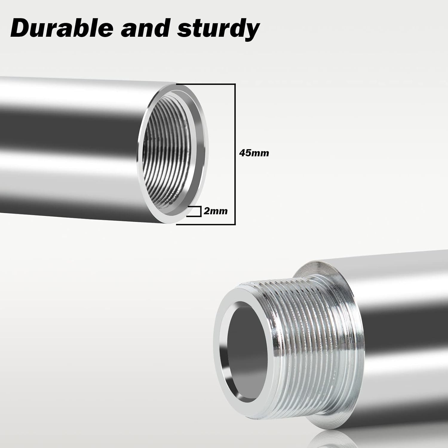 - Fabriquée en acier chromé de 45 mm de diamètre, elle assure une résistance supérieure à la rouille et une durabilité exceptionnelle.