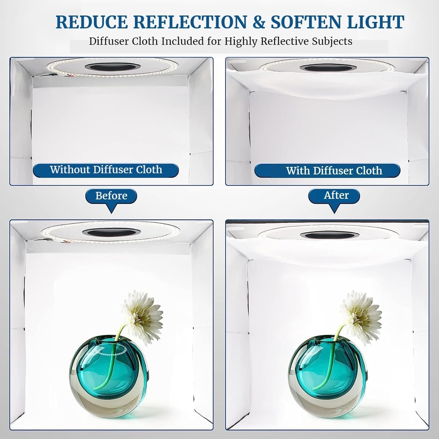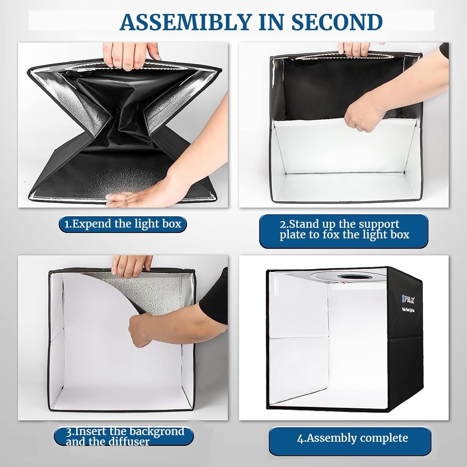 Éclairage studio 40cm réglable | 12 fonds photo inclus | Montage rapide & portable Lire plus