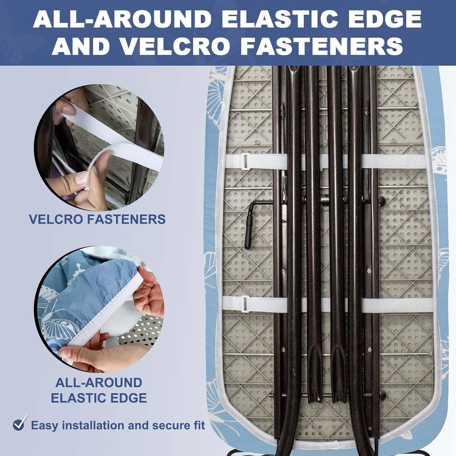 Cette housse de planche à repasser rembourrée et thermorésistante, ornée de motifs Papillon, est conçue pour optimiser votre expérience de repassage et s'adapte à diverses tailles.