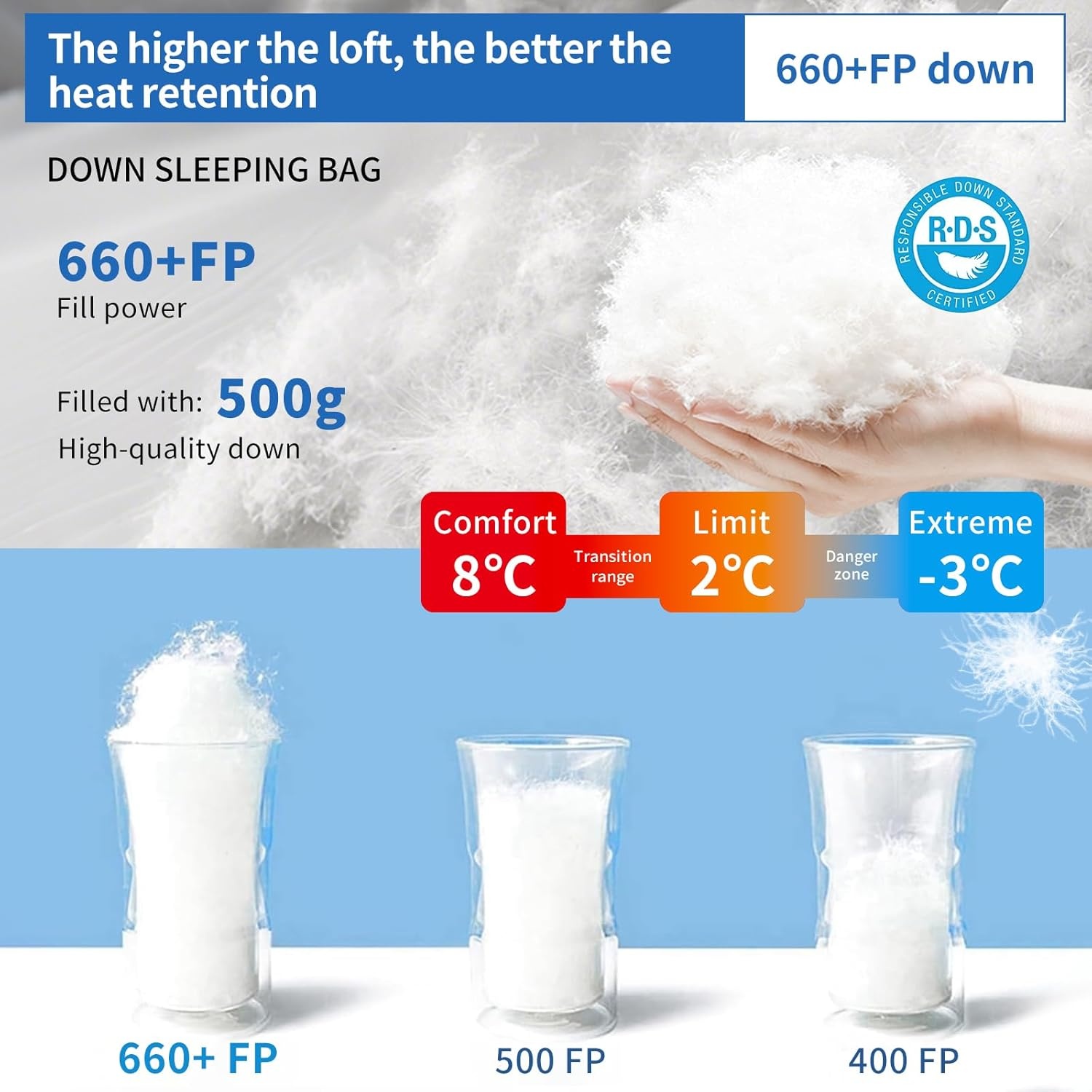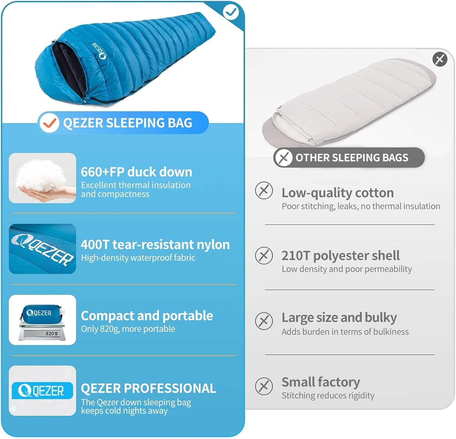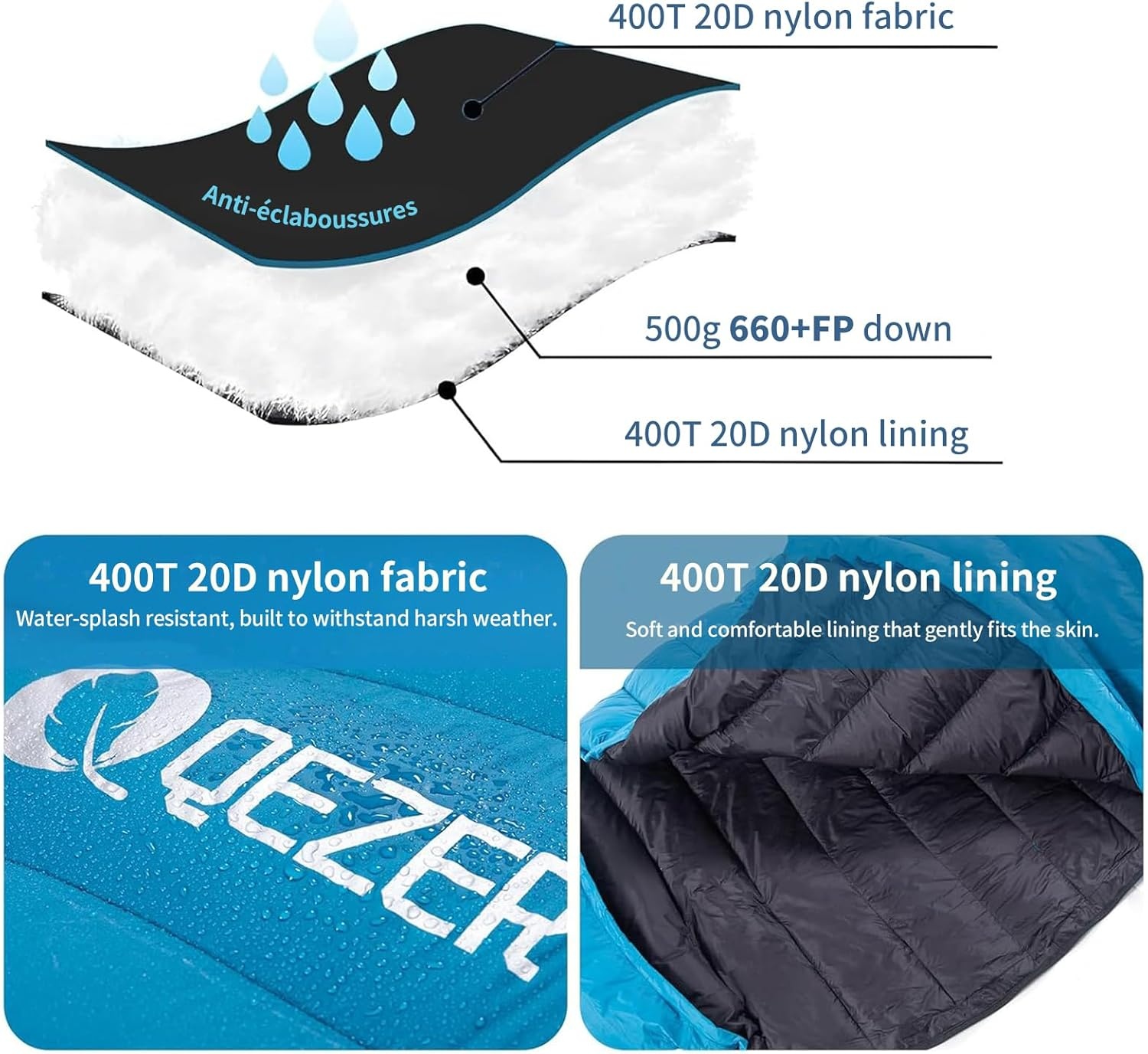 Ultraléger et compact (860g) | Duvet 650 FP pour 4 saisons | Robuste et imperméable 400T 20D Lire plus